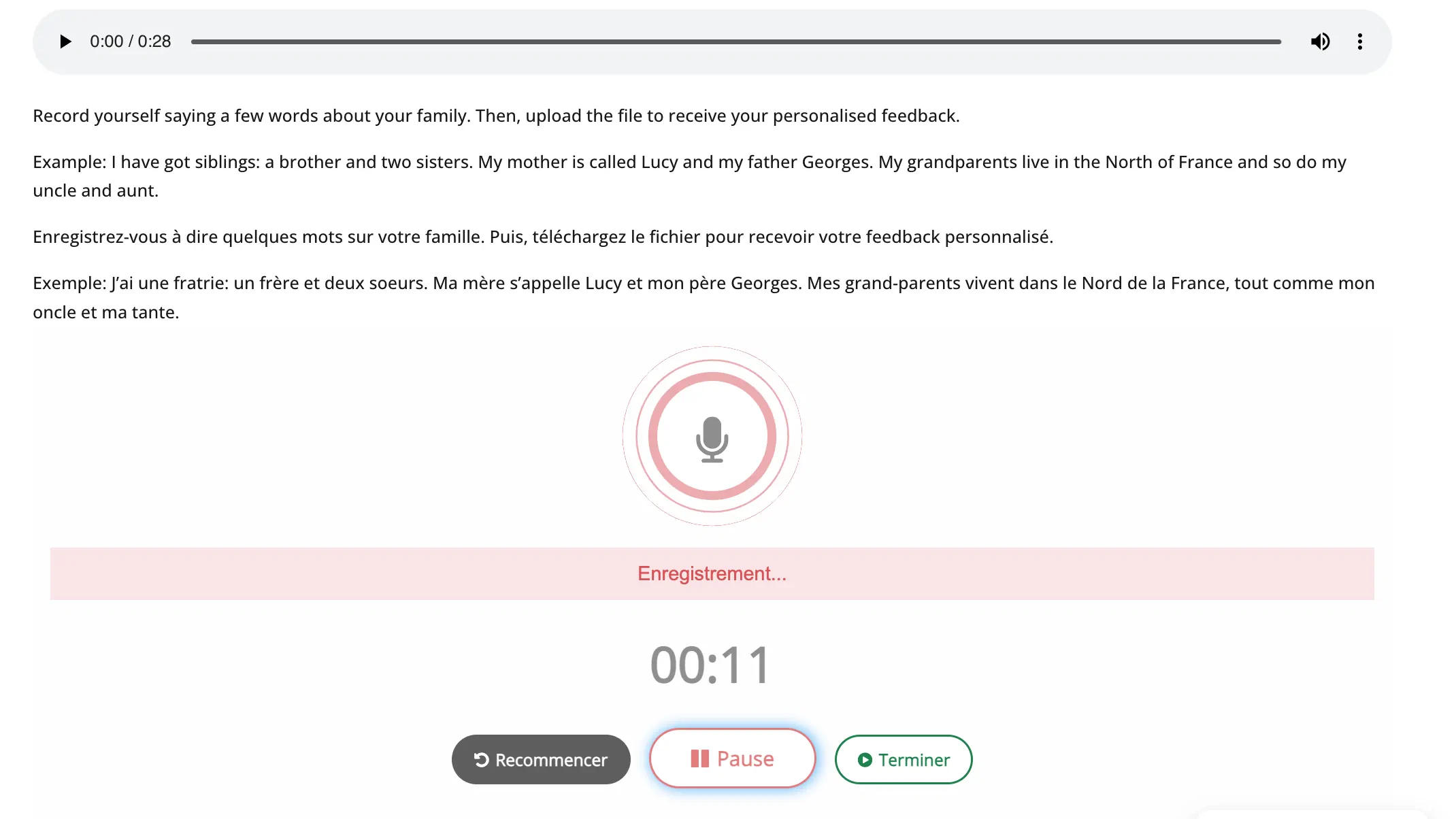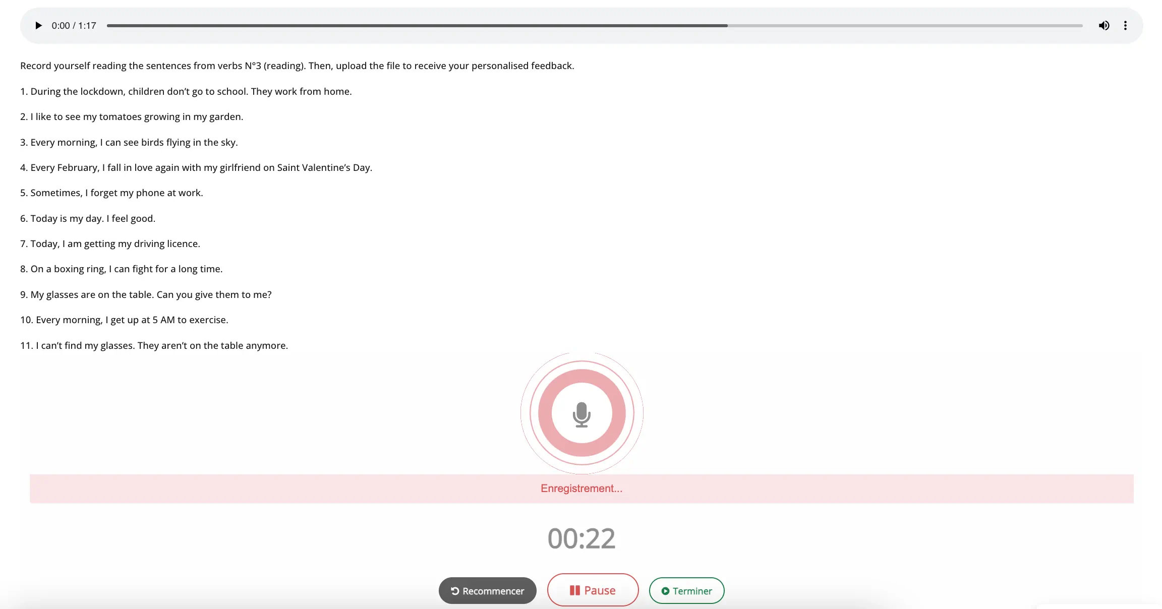 ✔ Votre prononciation grâce à 110 enregistrements à modéliser et adresser à l’un de nos formateurs pour un retour personnalisé