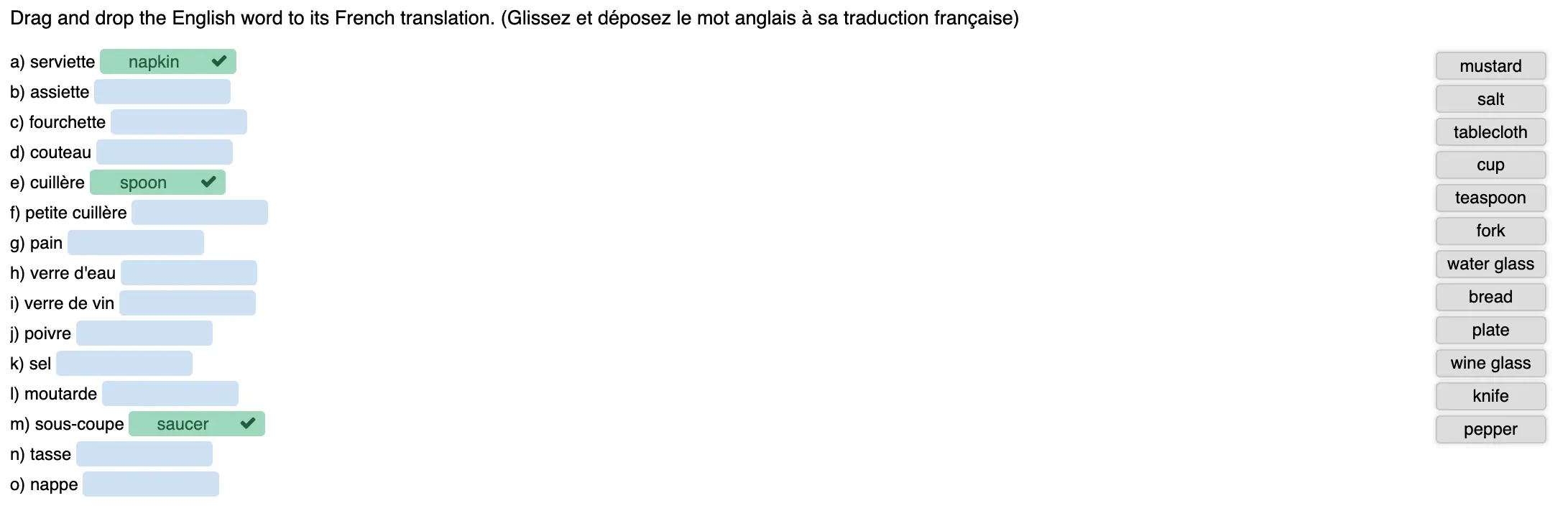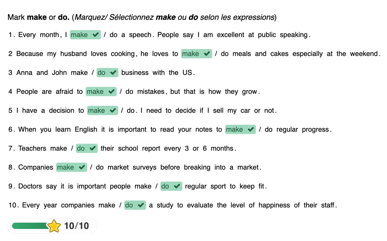 Activités en ligne (quiz, textes à trous, dictées, drag and drop, flashcards, mots cachés, relier ou marquer le mot)